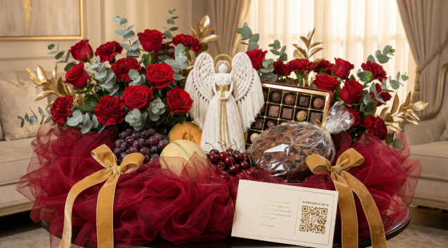 📝 Descripción Sensorial: Más que una canasta, es una nube de dulzura. El volumen del empaque crea una experiencia de desempaquetado de lujo. Las frutas exóticas aportan color y vida, mientras el ángel hecho a mano queda como un recuerdo eterno.