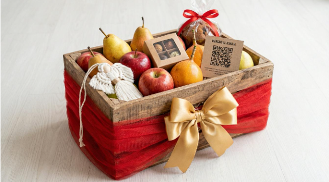 📝 Descripción Sensorial: Una selección curada de las frutas más frescas del mercado, presentadas sobre una cama de viruta de madera natural. Es un regalo que habla de autenticidad y buen gusto, combinando lo dulce de la fruta con la tradición de la navidad.